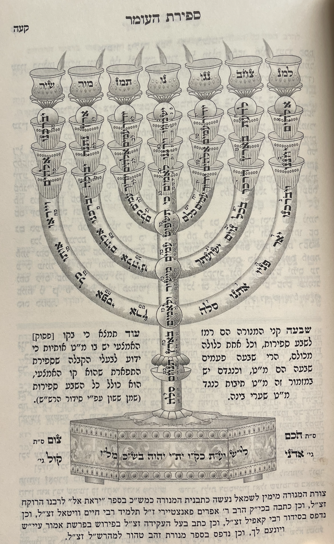 רִבּוֹנוֹ שֶׁל עוֹלָם, אַתָּה צִוִּיתָנוּ עַל יְדֵי מֹשֶׁה עַבְדֶּךָ לִסְפּוֹר סְפִירַת הָעוֹמֶר כְּדֵי לְטַהֲרֵנוּ מִקְּלִפּוֹתֵינוּ וּמִטֻּמְאוֹתֵינוּ, כְּמוֹ שֶׁכָּתַבְתָּ בְּתוֹרָתֶךָ: וּסְפַרְתֶּם לָכֶם מִמָּחֳרַת הַשַּׁבָּת מִיּוֹם הֲבִיאֲכֶם אֶת־עֹמֶר הַתְּנוּפָה שֶׁבַע שַׁבָּתוֹת תְּמִימֹת תִּהְיֶינָה. עַד מִמָּחֳרַת הַשַּׁבָּת הַשְּׁבִיעִת תִּסְפְּרוּ חֲמִשִּׁים יוֹם, כְּדֵי שֶׁיּטָּהֲרוּ נַפְשׁוֹת עַמְּךָ יִשְׂרָאֵל מִזֻּהֲמָתָם, וְּבְכֵן יְהִי רָצוֹן מִלְּפָנֶיךָ יְיָ אֱלֹהֵינוּ וֵאלֹהֵי אֲבוֹתֵינוּ, שֶׁבִּזְכוּת סְפִירַת הָעוֹמֶר שֶׁסָּפַרְתִּי הַיּוֹם, יְתֻקַּן מַה שֶׁפָּגַמְתִּי בִּסְפִירָה