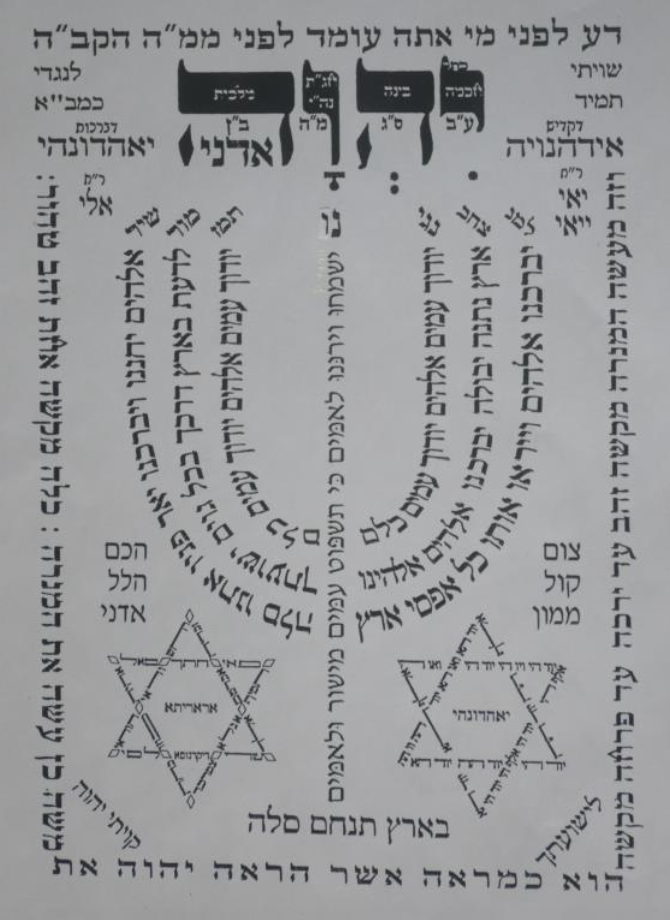 אָנָּא בְּכֹחַ גְּדֻלַּת יְמִינְךָ תַּתִּיר צְרוּרָה. (אב""ג ית""ץ):