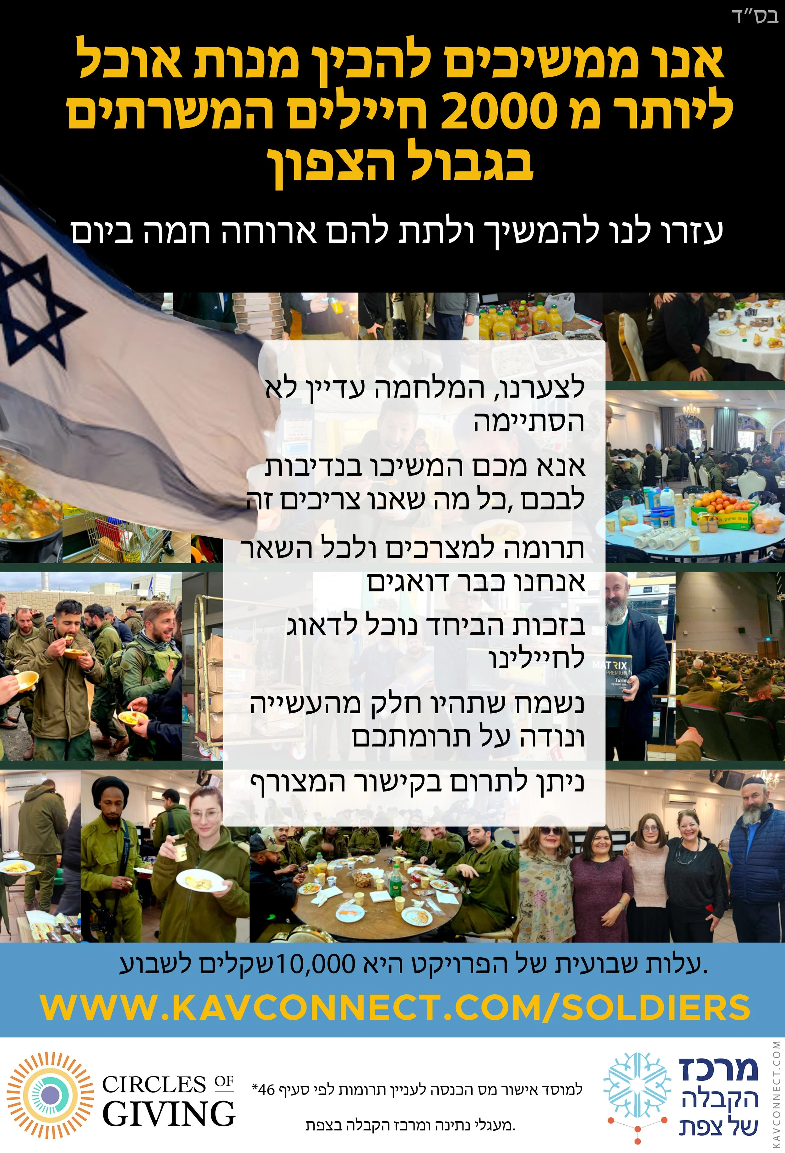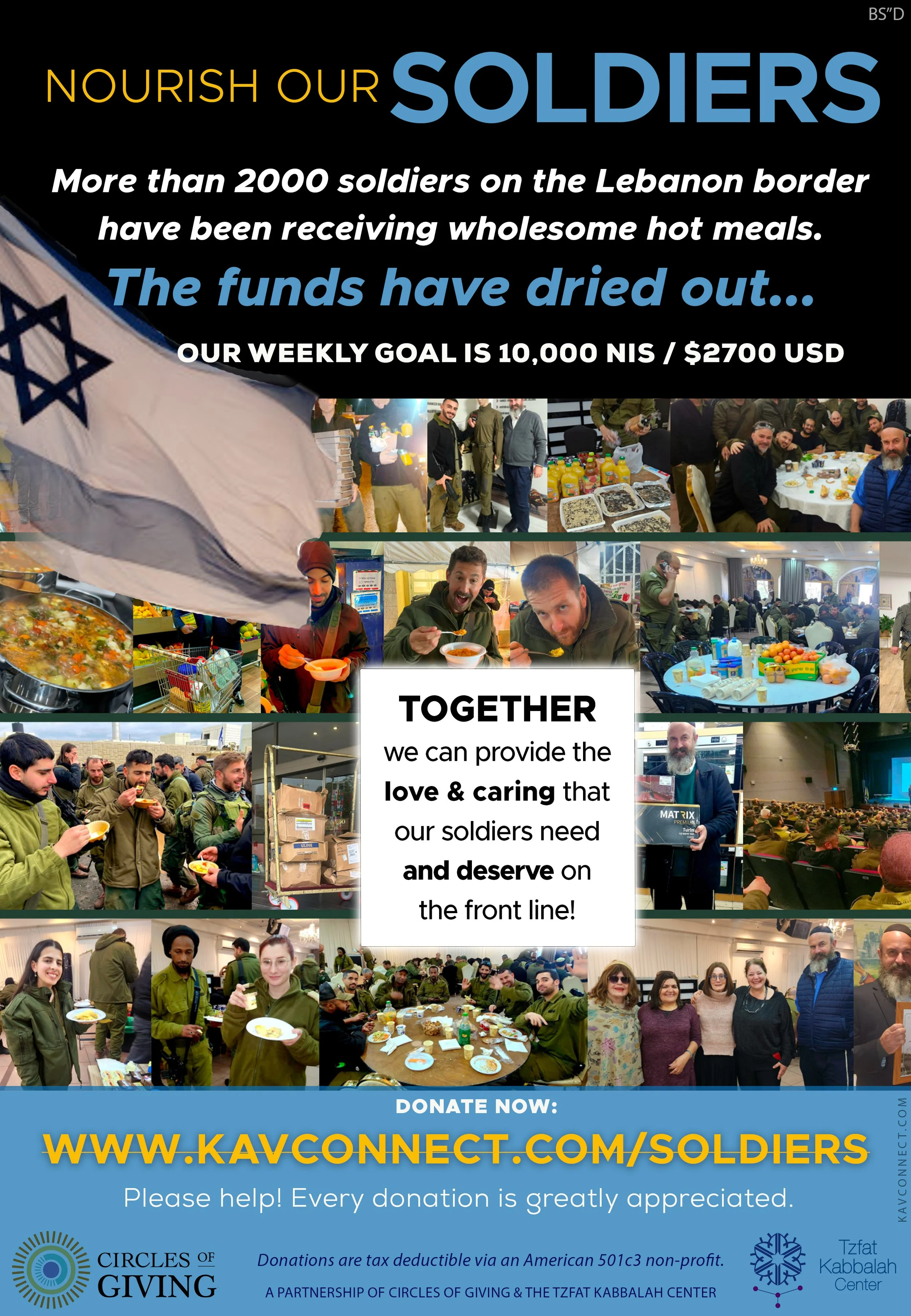 🇮🇱NOURISH OUR SOLDIERS More than 2000 soldiers on the Lebanon border have been receiving wholesome Kosher hot meals. The funds have dried out...They need Your Help TODAY! DONATE NOW Donations are tax deductible via an American 501c3 non-profitFor more payment options please contact:In Israel & Whatsapp: +972 52-843-6100 or US: 1-213-401-2588TOGETHER… we can provide the love & caring that our soldiers need and deserve on the front line!